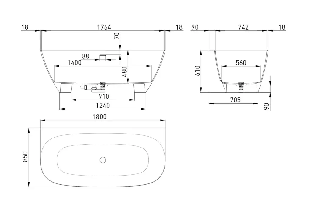 Salini Sofia Ванна отдельностоящая 170x80cм, донный клапан "Up&Down", сифон, слив-перелив, материал: S-Sense, цвет: белый глянец