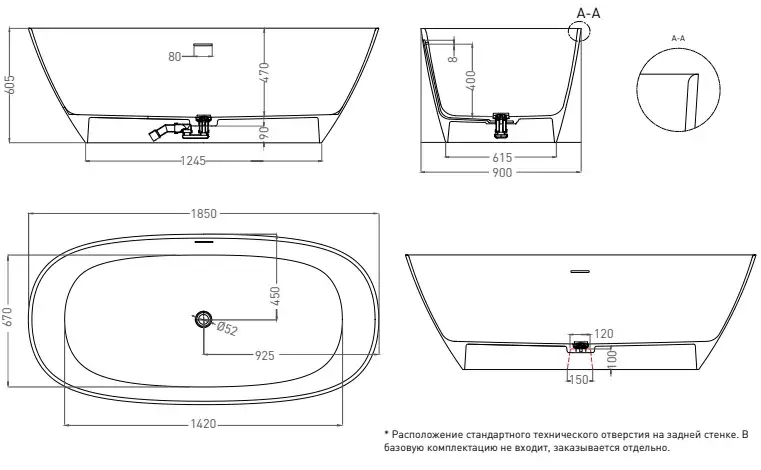 Salini Sofia Ванна отдельностоящая 165x75x60см, донный клапан "Up&Down", сифон, слив-перелив, S-Stone, цвет: белый матовый
