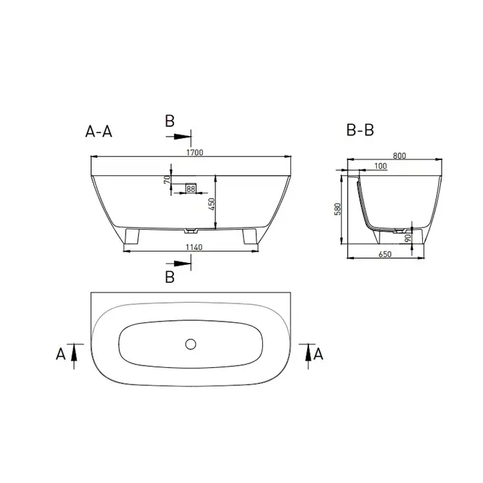 Salini Sofia Ванна S-Stone пристенная, округлая, перелив по центру, 170х79,5 см, цвет: белый матовый 102522M