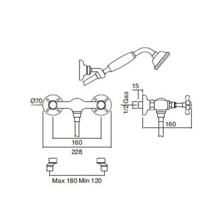 Sbordoni Antica Смеситель для душа настенный с ручным душем, цвет: черный никель AN154dxNN