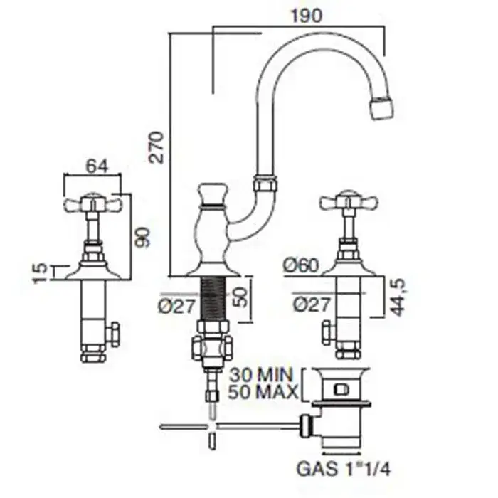 Sbordoni Antica Смеситель для раковины на 3 отв. с донным клапаном, h32,5 см, цвет хром AN137bCR