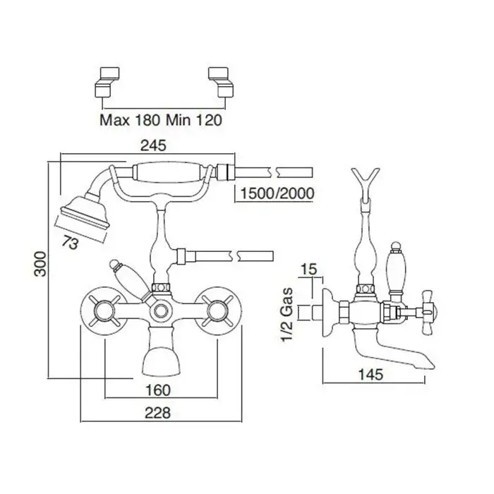 Sbordoni Antica Смеситель для ванны настенный с ручным душем и гибким шлангом, цвет хром AN116CR