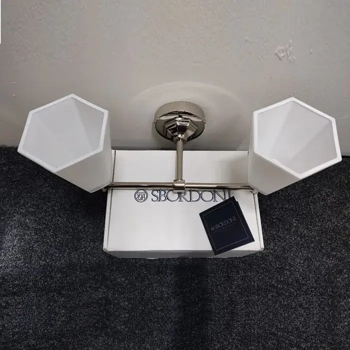 Sbordoni Deco Двойной светильник с абажуром из опалового стекла, цвет никель стекло белое DE032NI