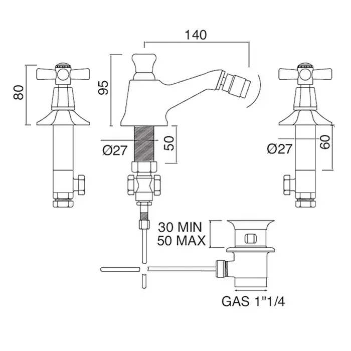 Sbordoni Deco Prestige Смеситель для раковины на 3 отв., h6,5 см, ручки Deco, цвет хром DE142CR