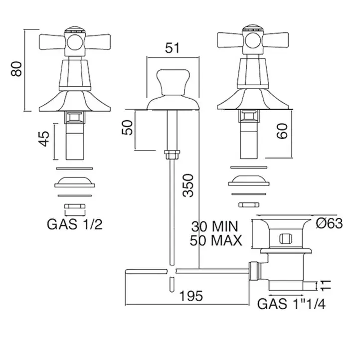 Sbordoni Deco Prestige Смеситель для раковины на 3 отв., h6,5 см, ручки Deco, цвет хром DE142CR