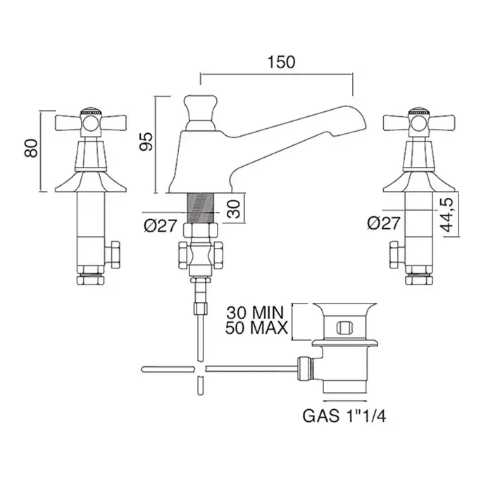 Sbordoni Deco Prestige Смеситель для раковины на 3 отв., h6,5 см, ручки Deco, цвет хром DE142CR