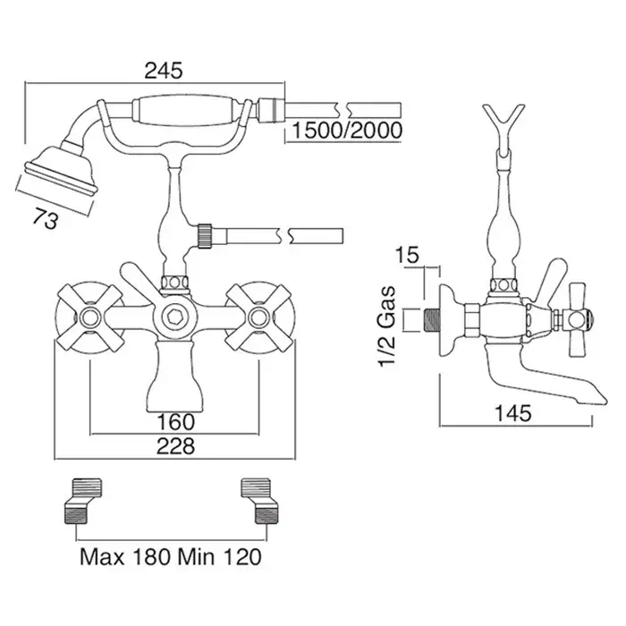 Sbordoni Deco Prestige Смеситель для ванны настенный, ручки Deco, цвет черный никель DE116NN