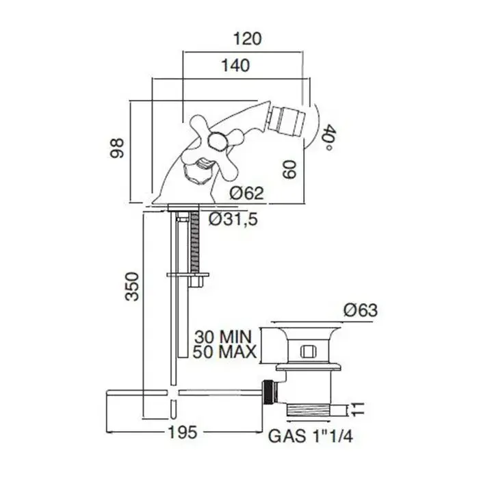 Sbordoni Etruria Смеситель для раковины на 3 отв., излив 14 см, h8 см, цвет хром ET142maCR