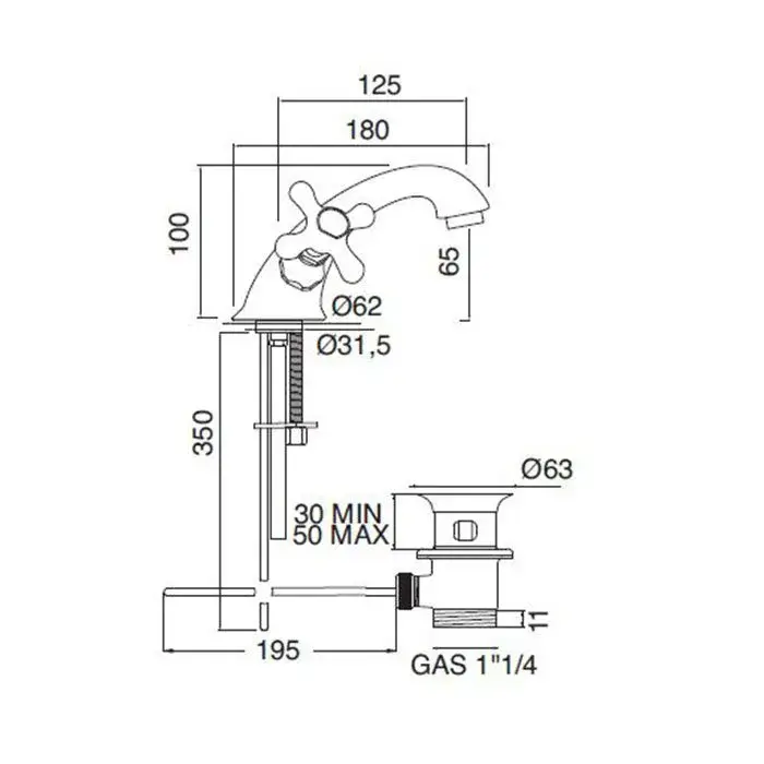 Sbordoni Etruria Смеситель для раковины на 3 отв., излив 14 см, h8 см, цвет хром ET142maCR