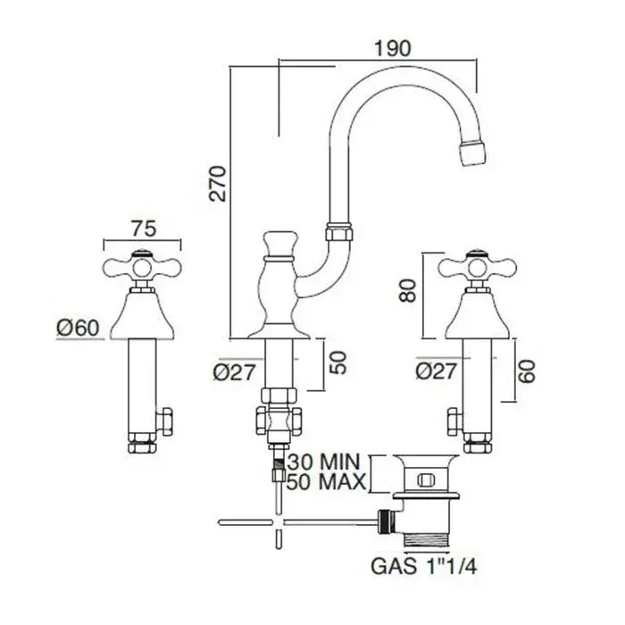 Sbordoni Etruria Смеситель для раковины на 3 отв., излив 19 см, h27 см, цвет хром ET142saCR
