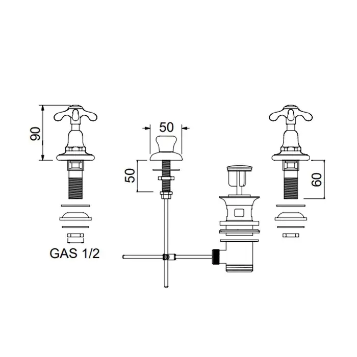 Sbordoni Firenze Смеситель для биде на 1 отв. с донным клапаном, цвет: латунь FI85bON