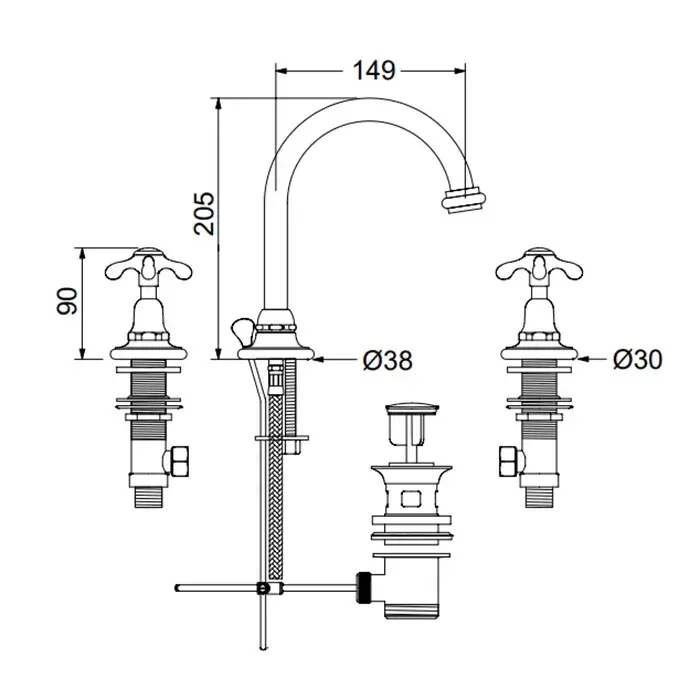 Sbordoni Firenze Смеситель для раковины на 3 отв., излив 14,9xh20,5 см, цвет: латунь FI143OON