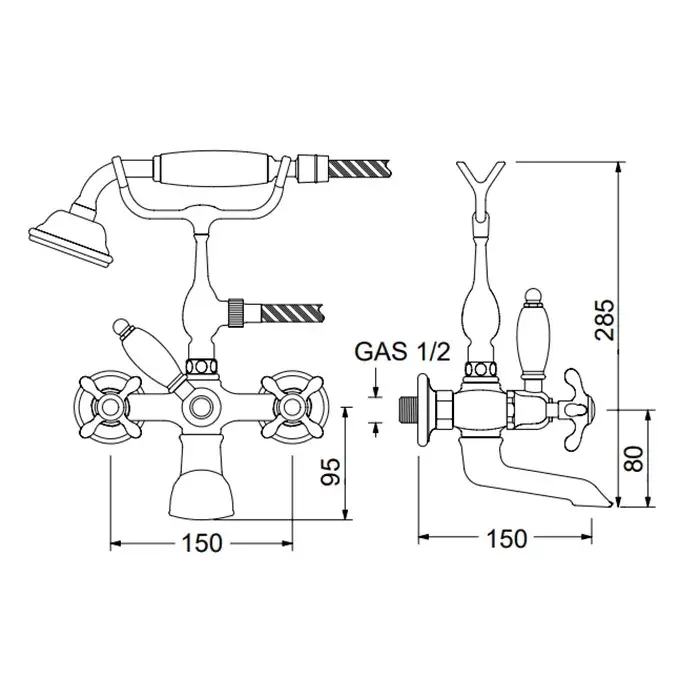 Sbordoni Firenze Смеситель для ванны настенный с ручным душем и шлангом, цвет: глянц. латунь FI116OL