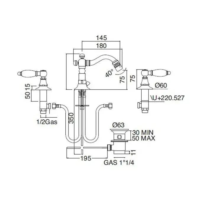 Sbordoni Livia Смеситель для биде на 3 отв., металл. ручки, цвет глянцевая латунь LI146clMOL