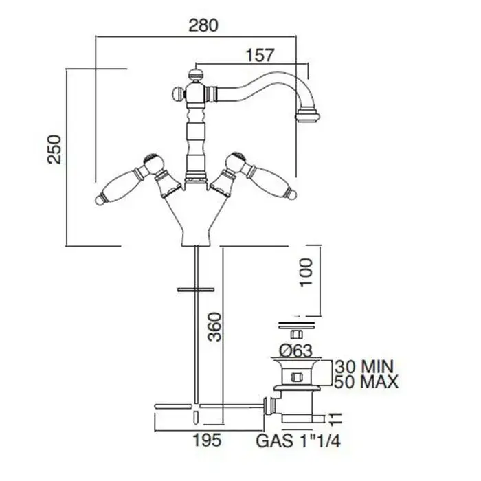Sbordoni Livia Смеситель для раковины на 1 отв. с донным клапаном, металл. ручки, цвет хром LI87MCR