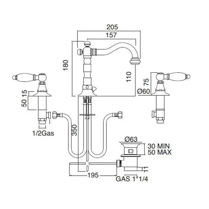Sbordoni Livia Смеситель для раковины на 3 отв., h11 см, черные ручки, цвет черный никель LI142clNNN