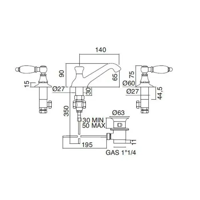 Sbordoni Livia Смеситель для раковины на 3 отв., h11 см, белые ручки, цвет хром LI142clBCR