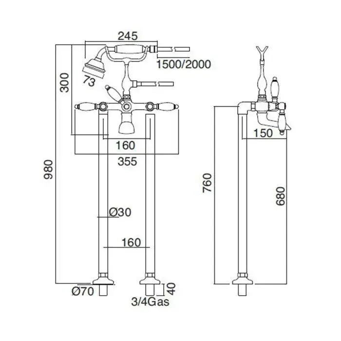 Sbordoni Livia Смеситель для ванны напольный h68 см, металл. ручки, цвет хром LI116cMCR