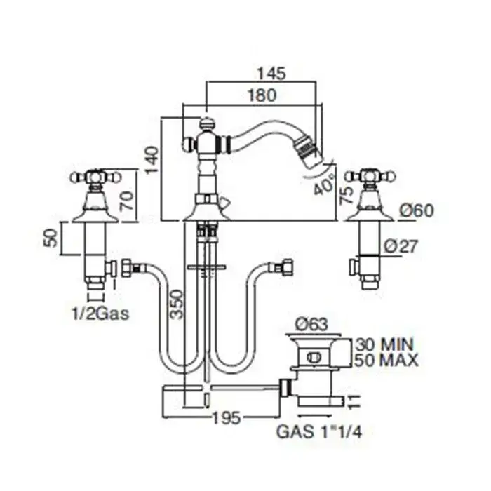 Sbordoni Londra Смеситель для биде на 3 отв. с донным клапаном, цвет: хром LO146clCR