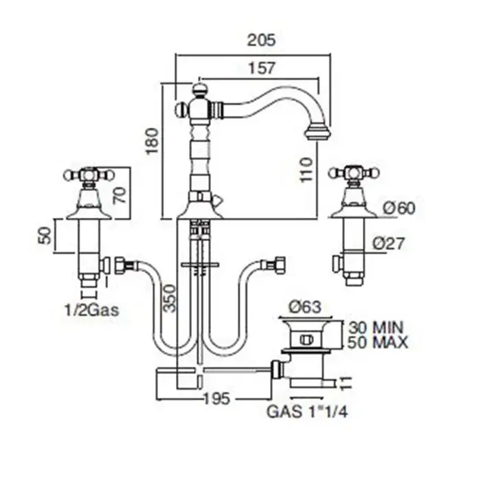 Sbordoni Londra Смеситель для раковины на 3 отв., излив 15,7 см, h11 см, цвет хром LO142clCR