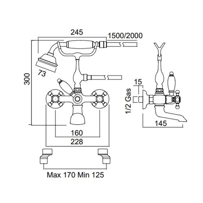 Sbordoni Londra Смеситель для ванны настенный с ручным душем и гибким шлангом, цвет бронза LO116BR