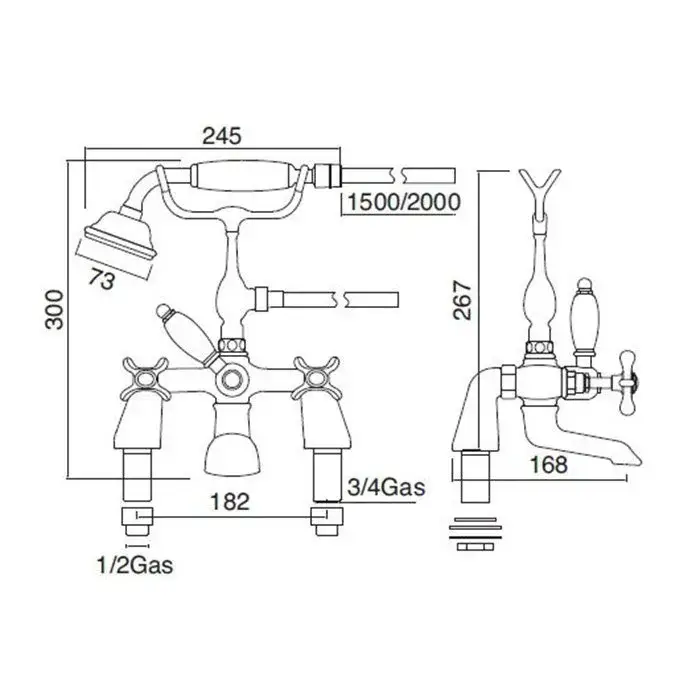 Sbordoni Margherita Смеситель на борт ванны на 2 отв. с ручным душем, цвет: хром MR116gCR