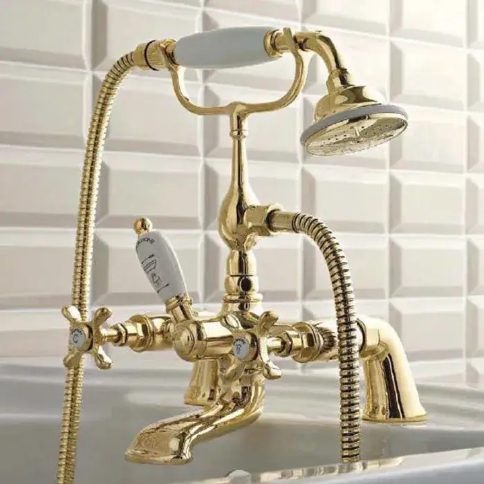 Sbordoni Margherita Смеситель на борт ванны на 2 отв. с ручным душем, цвет: глянц. латунь MR116gOL