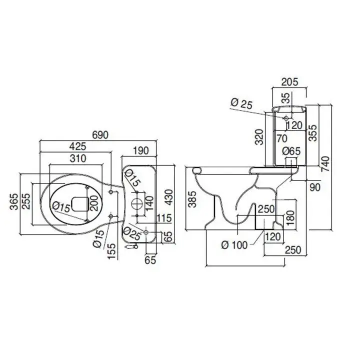 Sbordoni Palladio Чаша унитаза моноблока 36,5х69хh38,5 см, со сливом в стену, цвет белый 7034
