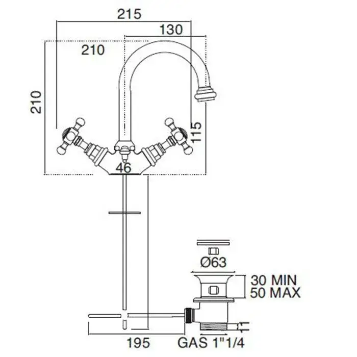 Sbordoni Parigi Пара одиночных кранов для раковины с донным клапаном изливы 9 см, цвет хром PA117DCR
