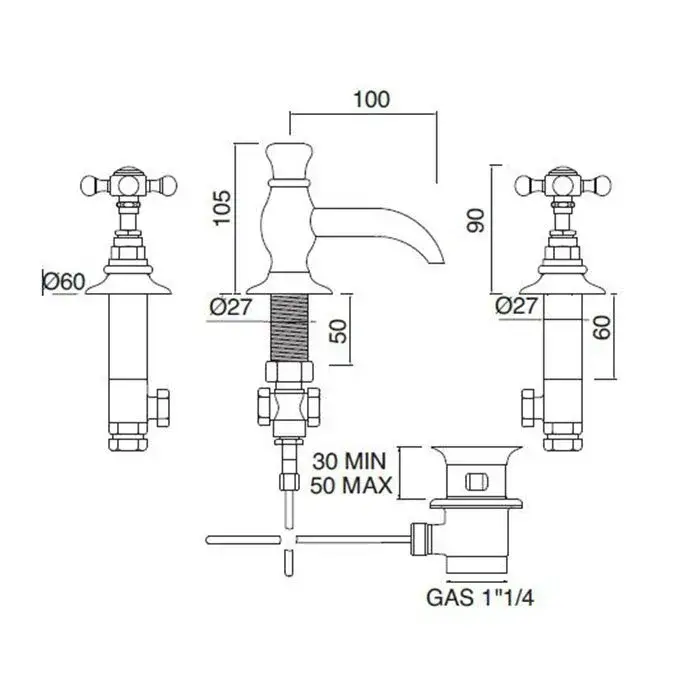 Sbordoni Parigi Пара одиночных кранов для раковины с донным клапаном изливы 9 см, цвет хром PA117DCR