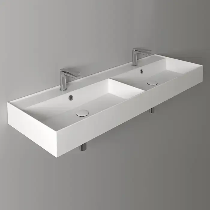 SIMAS AGILE Раковина двойная подвесная 141х46 см, с переливом, с 2 отв под смеситель,цвет белый
