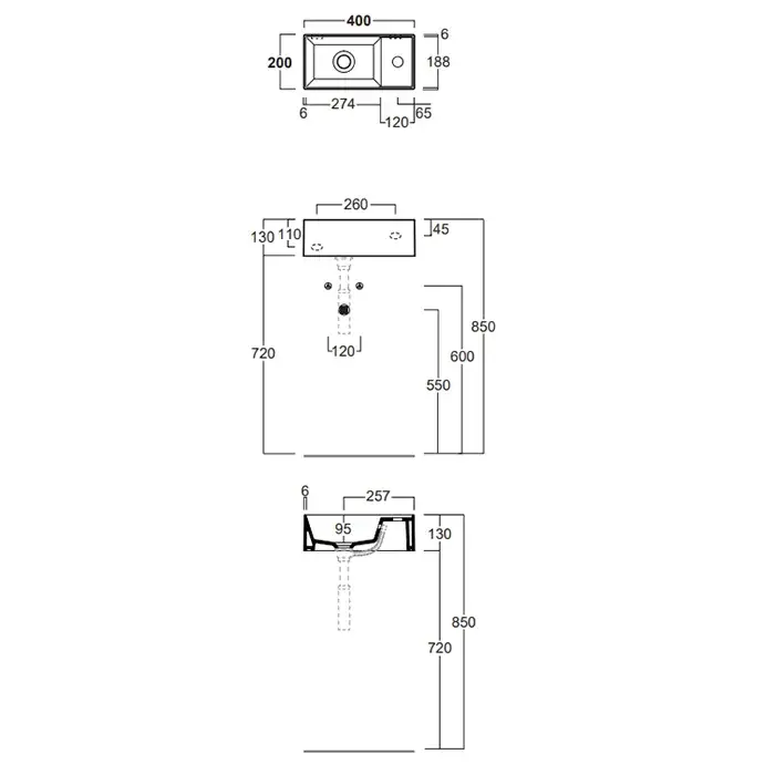 Simas Agile Раковина 40х20см., подвесная, 1 отв., правая, цвет: черный матовый