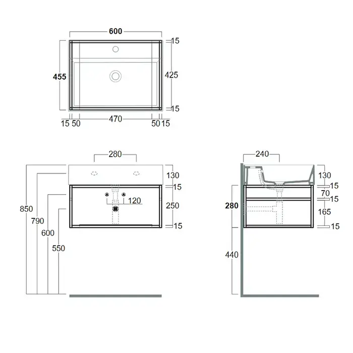 Simas Agile Раковина 50х27см., подвесная, 1 отв., правая, цвет: antracite matt