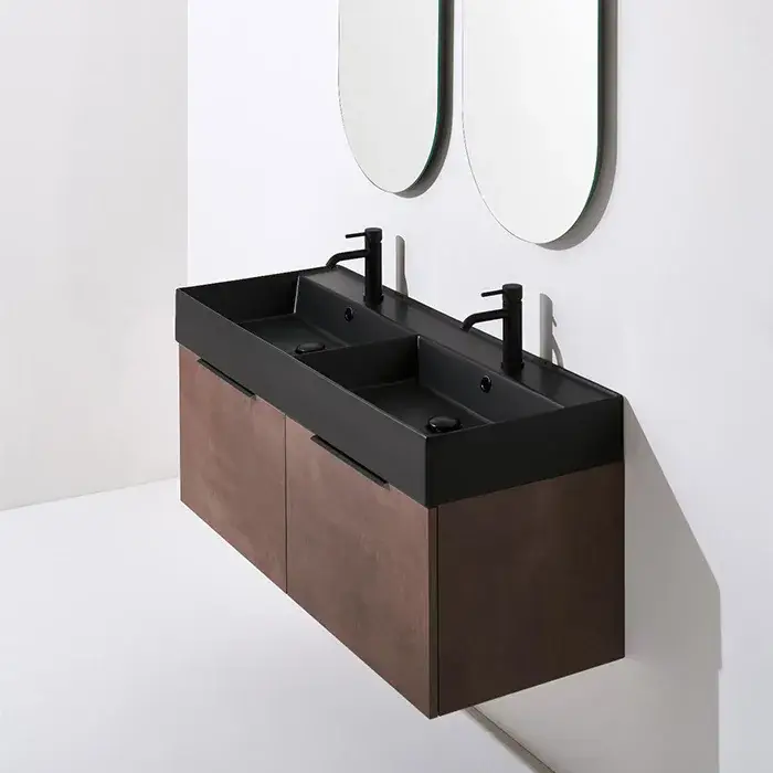 Simas Agile Раковина двойная 121х46см., подвесная, без перелива, без отв., цвет: черный матовый