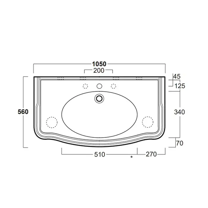 Simas Arcade Раковина подвесная 105х56 см, с переливом, 3 отвер. под смеситель, цвет: белый глянц. AR874bi*3