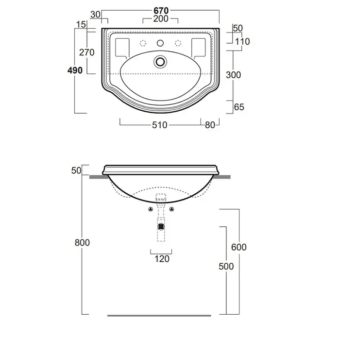 Simas Arcade Раковина полувстроенная 67х49 см, 3 отверстия под смеситель, цвет: белый глянцевый AR835bi*3