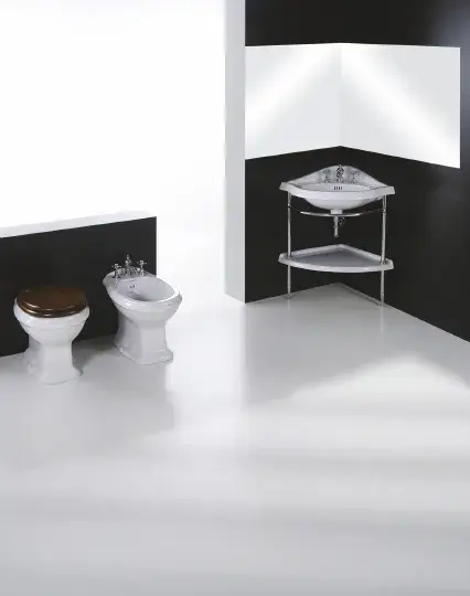 SIMAS Arcade Консоль угловая 75.5х61см, напольная,с подвесной белой раковиной на 1отв, и полкой, цвет: bronzo