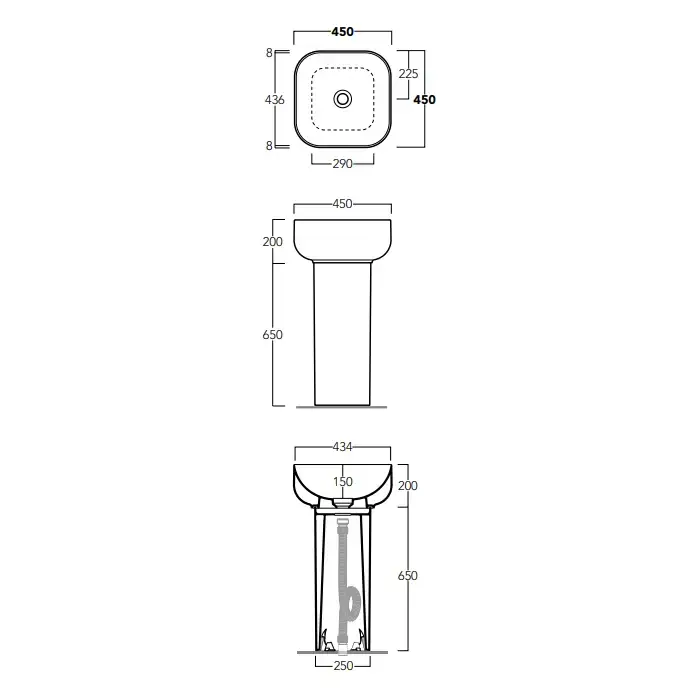 Simas Balloon Колонна под раковину квадратная 27,5xh65 см (слив в пол), цвет белый (без креплений F91 и комплекта SIFBA)