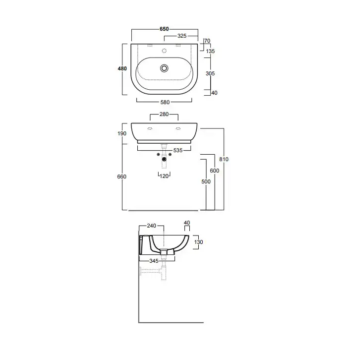 SIMAS E-LINE Раковина 650*480мм с одним намеченным отверстием подвесная, белый