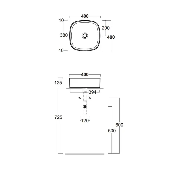 SIMAS Foriu Раковина квадратная накладная 40x40x13 см, без отв под смеситель, цвет: белый