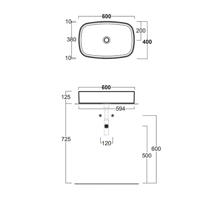 SIMAS Foriu Раковина прямоугольная накладная 60x40x13 см, без отв под смеситель, цвет: белый