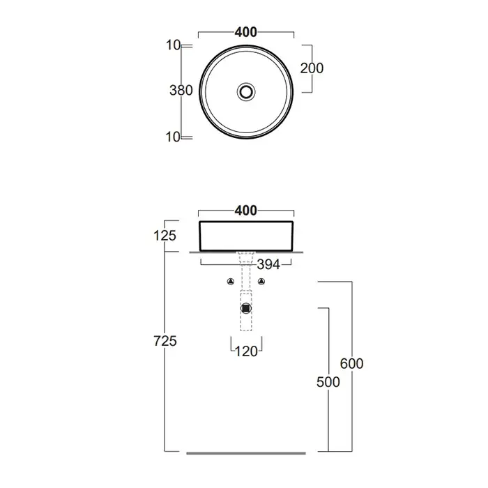 SIMAS Foriu Раковина круглая накладная ø40x13 см, без отв под смеситель, цвет: белый