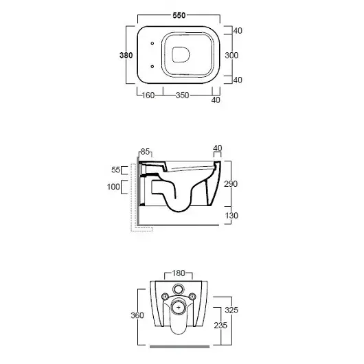 Simas Henges Унитаз напольный, безободковый 38х55см, цвет: черный глянцевый