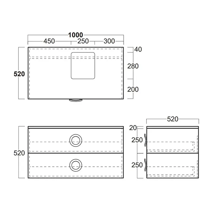 Simas Henges Тумба под раковину, подвесная 100х52х52h см, 2 ящика, цвет: bianco matt HEM02 bianco matt