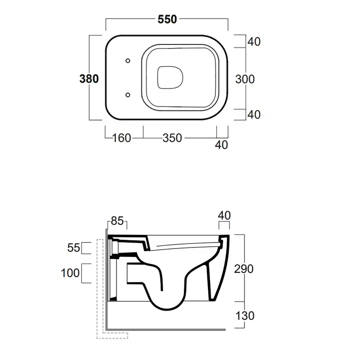 Simas Henges Унитаз 38х55см., подвесной, безободковый, цвет: nero matt