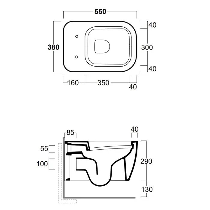Simas Henges Унитаз подвесной 38х55 см, безободковый, без крышки-сидения. цвет: nero matt HE18 nero matt