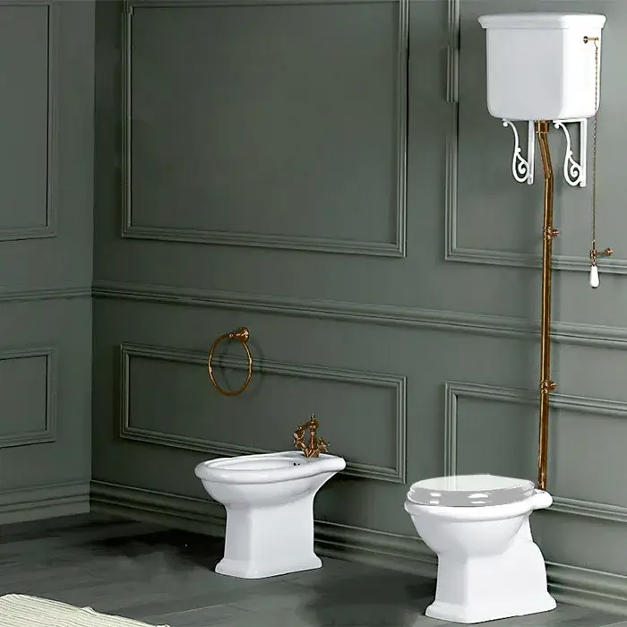 SIMAS Lante Унитаз моноблок 70.5х38.5см, с вертикальным сливом с бачком с боковой ручкой смыва, фурнитура бронза, цвет белый