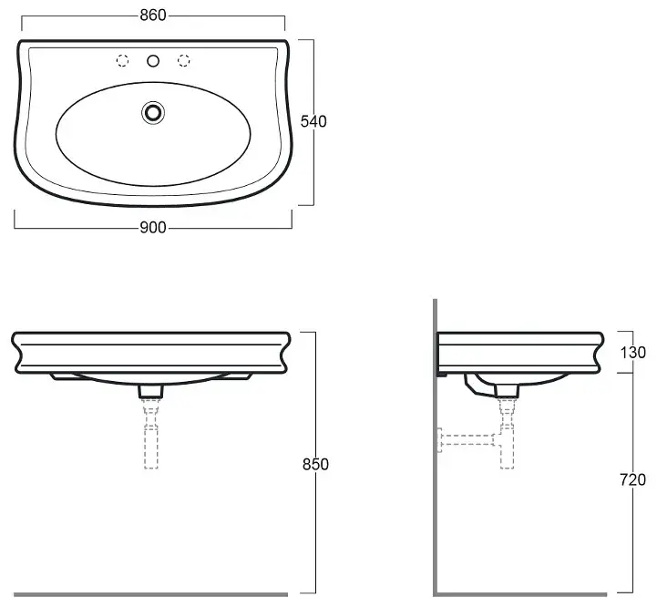 Simas Lante Раковина подвесная 90х54 см, с переливом, 1 отверстие под смеситель, цвет: белый глянц. LA11bi*1