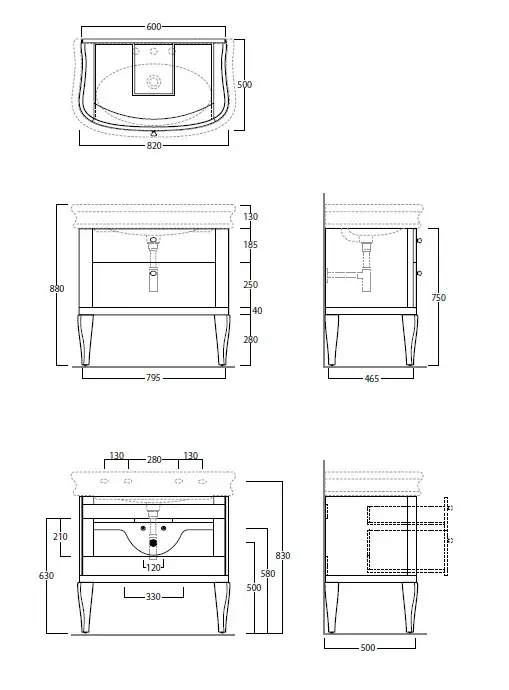 Simas Lante Тумба под раковину LA11, напольная 82х50х75h см, 2 ящика, цвет: nero LAM90 nero