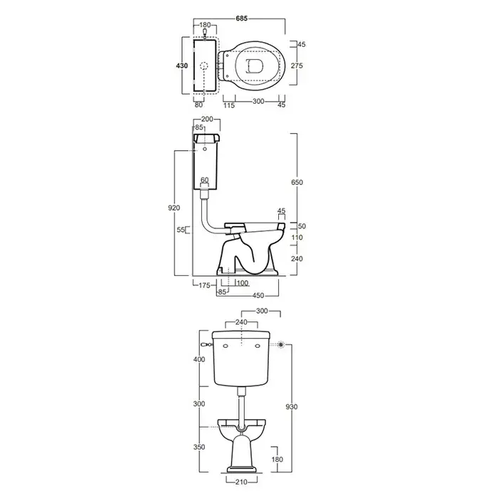 SIMAS Londra Унитаз 60х36.5см, c горизонтальным сливом, с высоким бачком, механизмом и трубой цвет хром